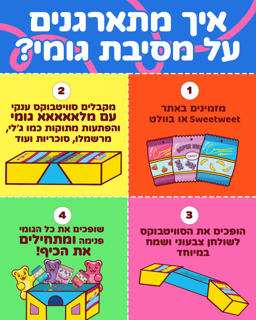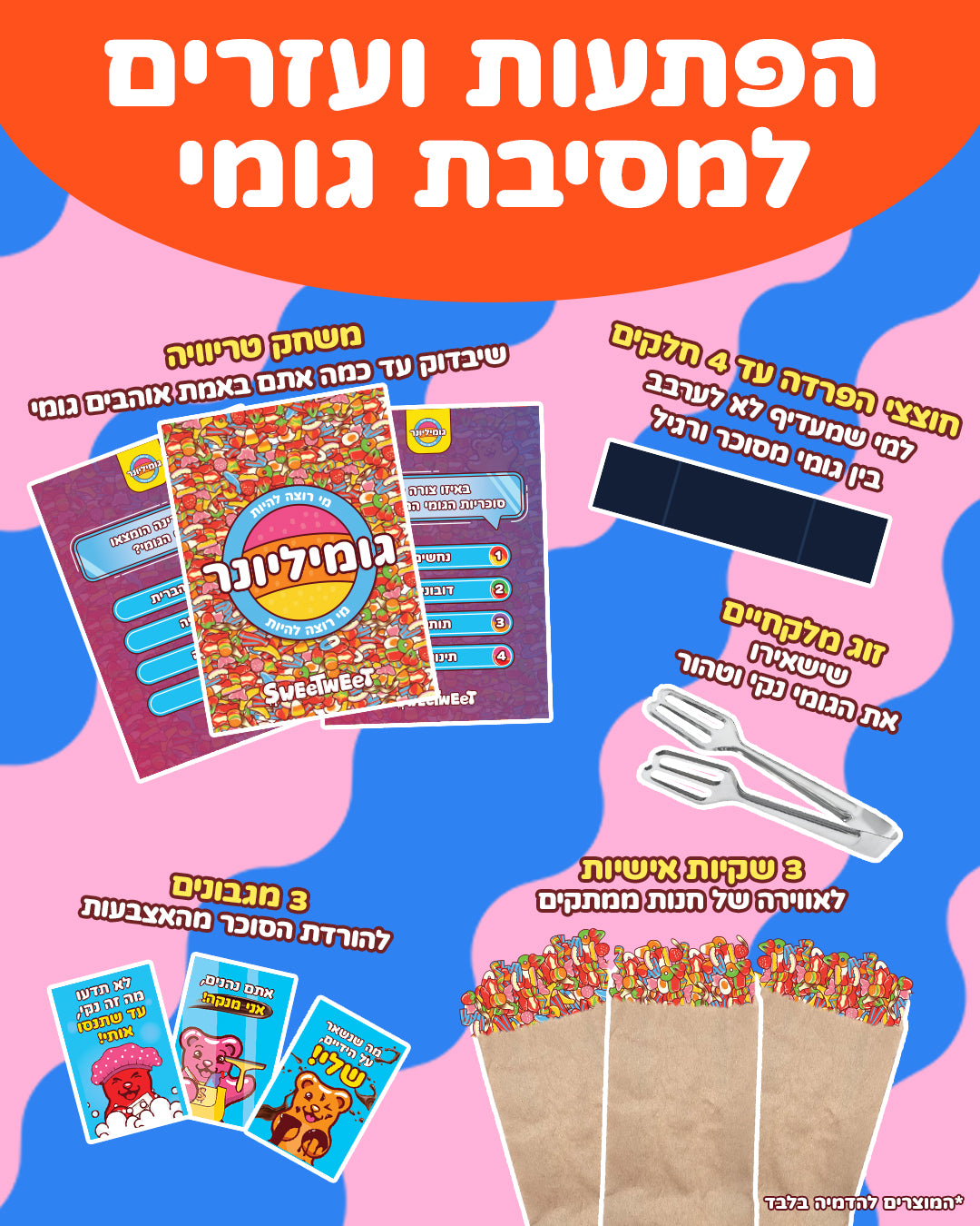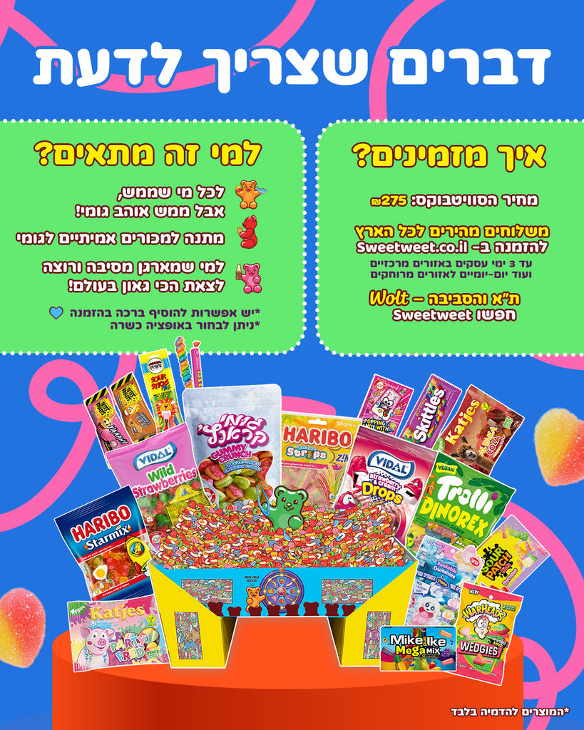 האיסוף מתבצע מארון הממתקים שלנו בתל אביב, דוד חכמי 6