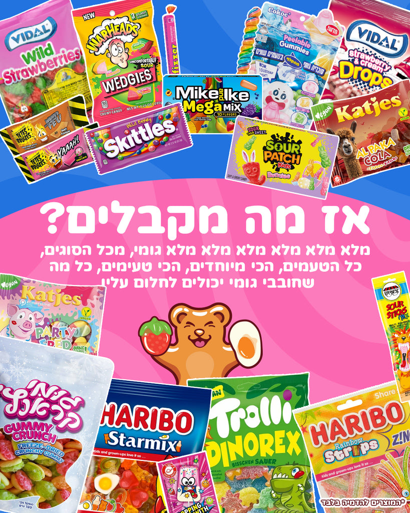 אחרי המדרגות, בצד ימין יחכה לכם חלון "ארון הממתקים", לחצו על הפעמון ואחד מדובוני הגומי שלנו ידאג להזמנה שלכם🍬