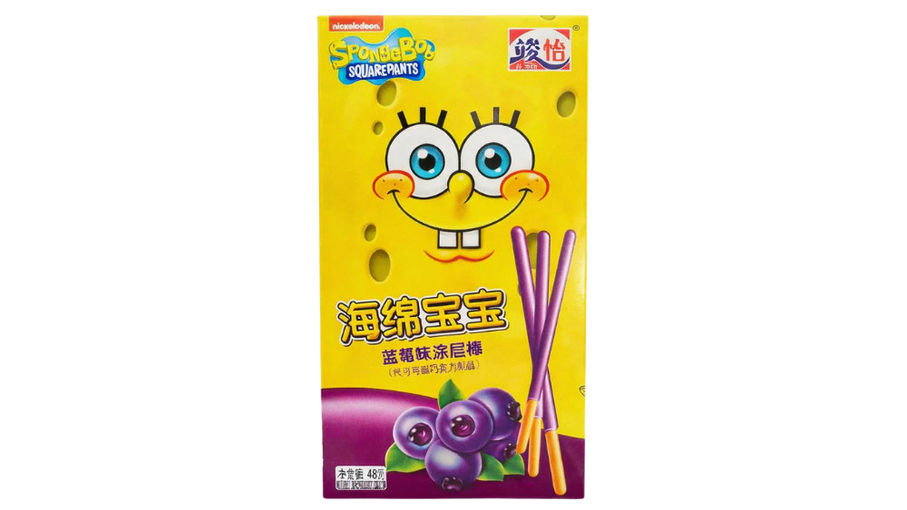 מקלוני ביסקוויט מצופים שוקולד בטעם אוכמניות בעיצוב מתוק של בובספוג!