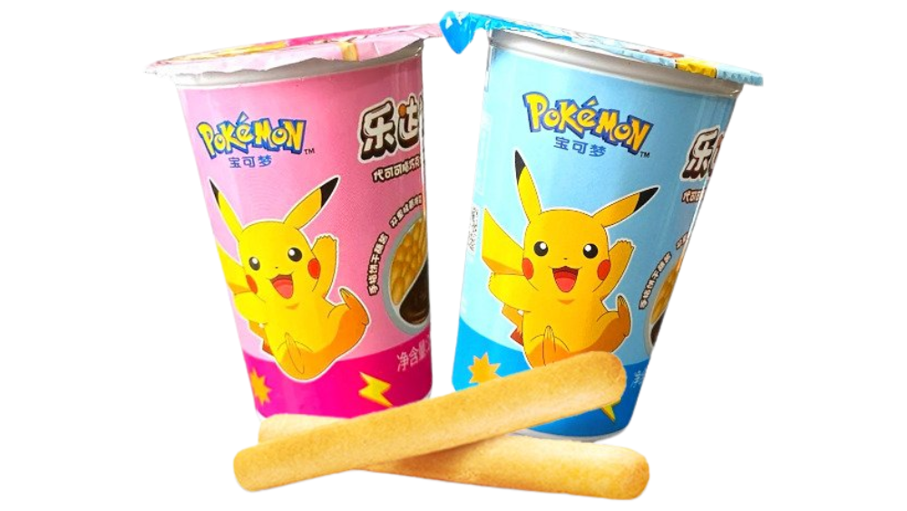 מקלות ביסקוויט פריכים עם מטבל שוקולד מתוק וטעים במיוחד, בכוס מעוצבת של פוקימון!