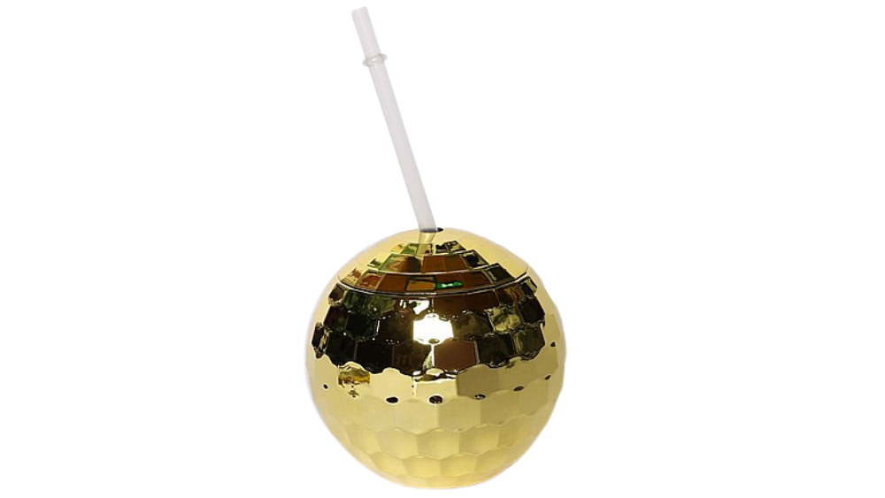 כוס שתייה בצורת כדור דיסקו מגניב ומהמם בצבע זהב, מושלם כקישוט מדליק במסיבת הפורים שלכם או סתם לאווירת דיסקו כיפית!