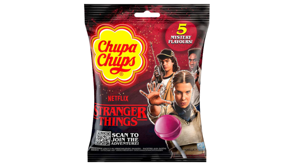 לכל אוהבי הסדרה הפופולרית "דברים מוזרים" שבינינו, אתם תאהבו את מהדורת הסוכריות המיוחדת הזו של צ'ופה צ'ופס! זהו מארז במהדורה מוגבלת של סוכריות על מקל Chupa Chups Stranger things עם טעם מסתורי בכל סוכריה בהשראת הסדרה! המארז כולל קוד QR לסריקה שמוביל למשחק דיגיטלי מתוק בעיצוב הסדרה