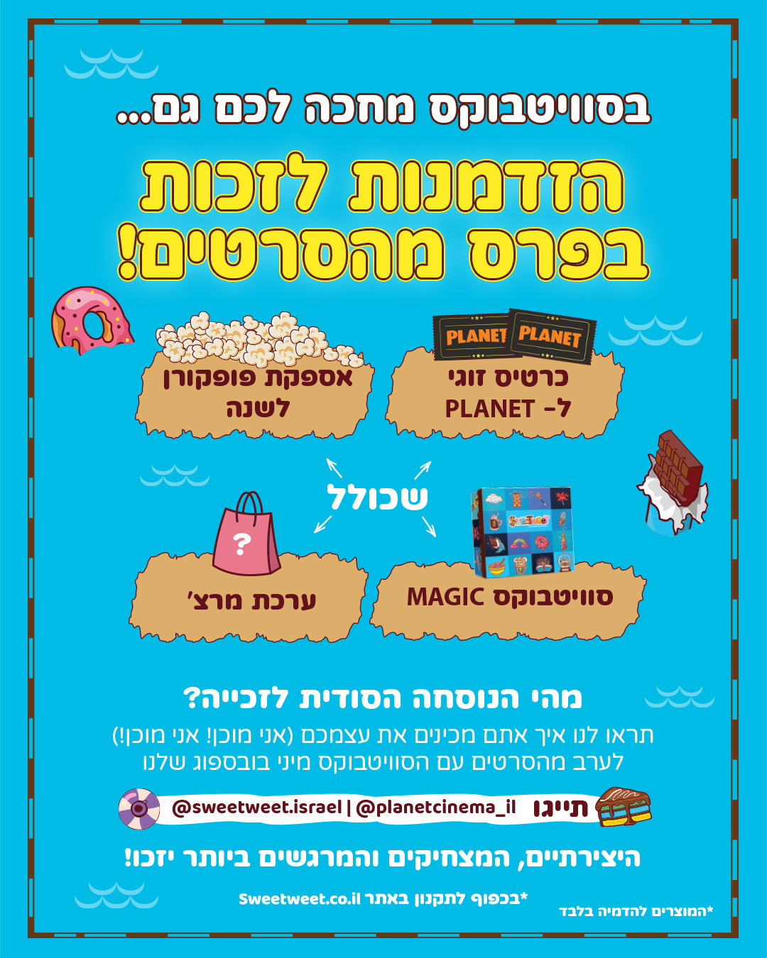 * את הסוויטבוקס ניתן להשיג במזנונים של PLANET בלבד: ראשון לציון | ירושלים | זכרון יעקב | איילון | חיפה | באר שבע