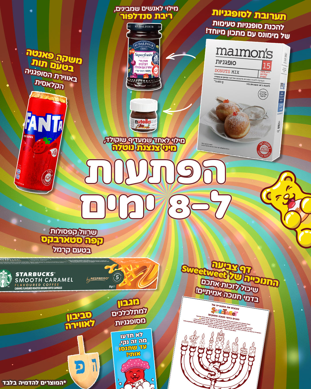 למזמינים עד נר ראשון (14/12) או עד גמר המתנות.