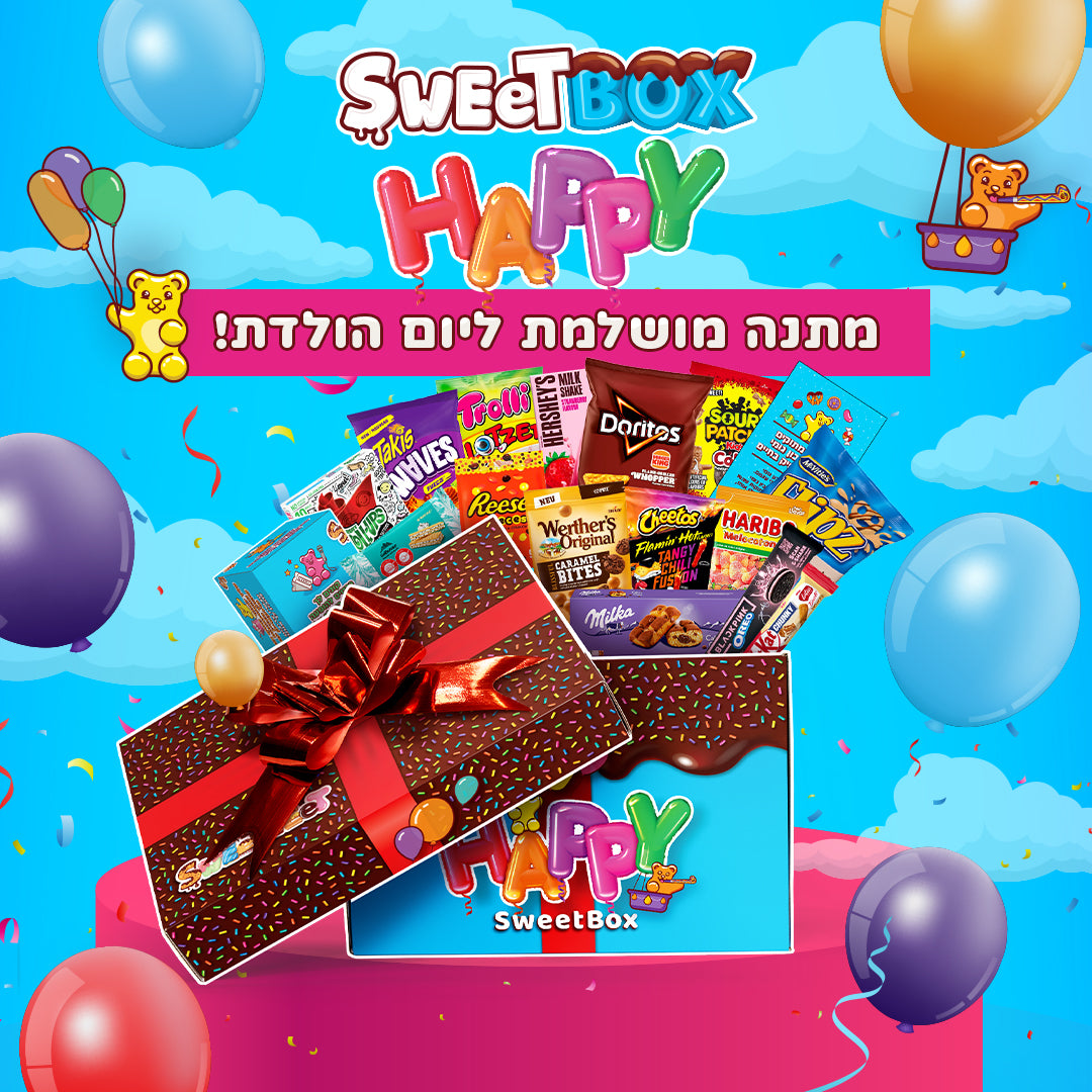 שימו לב - הסוויטבוקס לא כשר. בגלל שרצינו ליצור לכם סוויטבוקס מעניין במיוחד ישנם מוצרים שהזמנו מחו"ל והם מכילים חלב נוכרי וללא חותמת כשרות. במידה ותרצו גרסה כשרה, יש לקחת בחשבון שתקבלו יותר מוצרים ישראליים. ניתן להזמין את הגרסה הכשרה בקישור הבא: https://sweetweet.co.il/products/happy-kosher